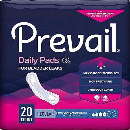 Prevail Incontinence Bladder Control Pads offer moderate absorbency for women with light to moderate bladder leakage. The regular-length design provides discreet, comfortable protection, while the advanced absorbent core quickly locks in moisture to keep you dry and secure. Made from soft, breathable materials, these pads are gentle on the skin and feature odor control technology to maintain freshness throughout the day. The 20-count pack ensures convenient, everyday use, making them an ideal choice for those seeking reliable, comfortable protection for bladder incontinence.