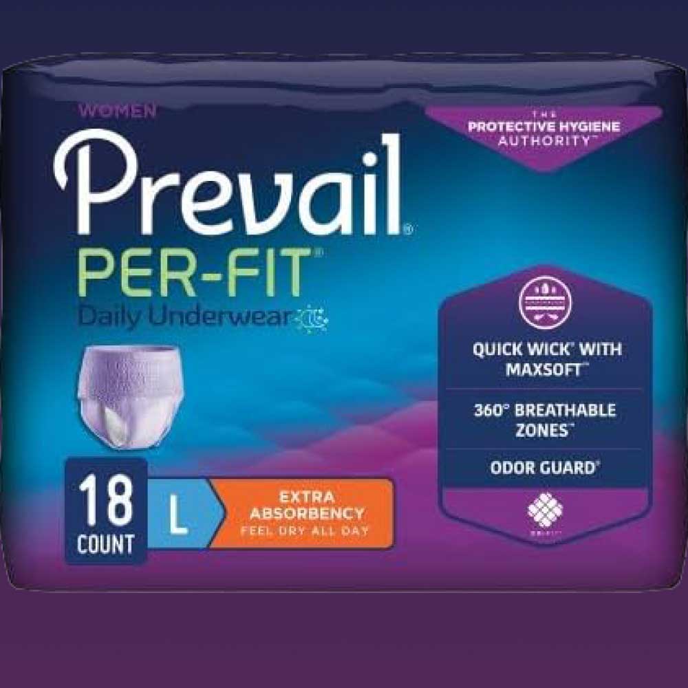 Prevail Incontinence Per-Fit Protective Underwear offers reliable, all-day protection for individuals with moderate to heavy incontinence. Available in a large size, these underwear provide a comfortable and secure fit with maximum absorbency to prevent leaks and ensure dryness. The advanced absorbent core quickly locks in moisture, while the breathable, soft material reduces the risk of skin irritation. The elastic waistband and leg openings offer a snug, personalized fit, and the odor control technology keeps you feeling fresh. With 18 pieces per pack, these protective underwear offer convenience, comfort, and reliable incontinence protection.