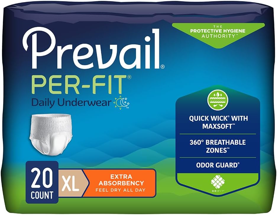 Prevail Per-Fit Daily Protective Underwear, Unisex Adult Disposable Adult Diaper for Men & Women, Extra Absorbency, X-Large